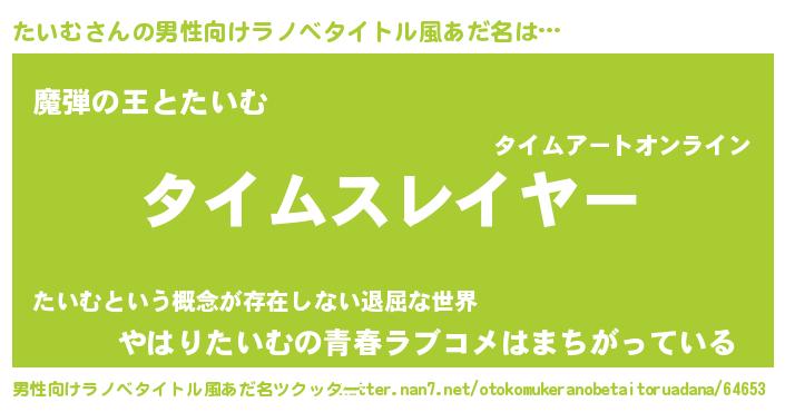 | ヒーロー風カッコイイあだ名 | 『仮面タイダー』『ウルトラたいむマン』 |