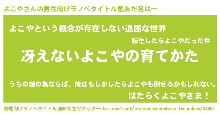 | ヘコむあだ名 | 『よこや(笑)』『つくし』『よこお』 |