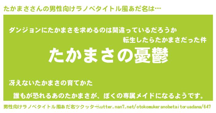 | 女子向けラノベタイトル風あだ名 | 『たかまさ姫と円卓の騎士』 |