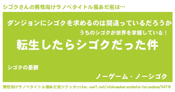 | ヒーロー風カッコイイあだ名 | 『幻影騎士シゴ』『正義の使者シゴク』 |