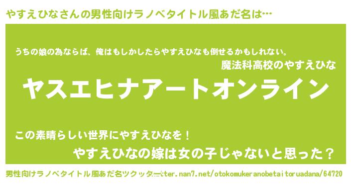 | ヒーロー風カッコイイあだ名 | 『スーパーヤスエヒナ』『炎刃騎士ヤス』 |