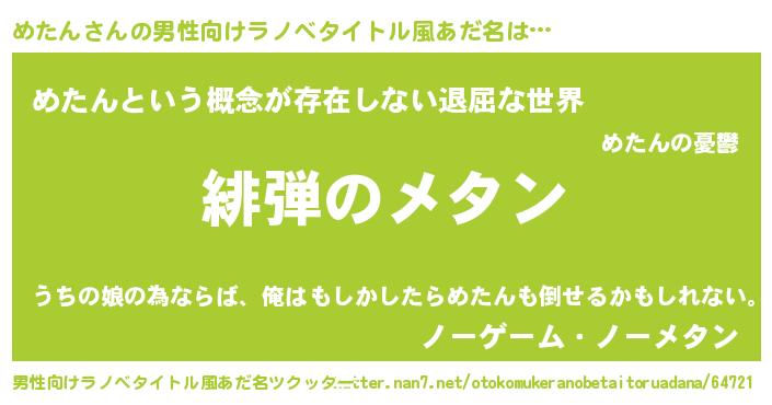 | ヒーロー風カッコイイあだ名 | 『ネオメタン』『正義の使者めたん』 |