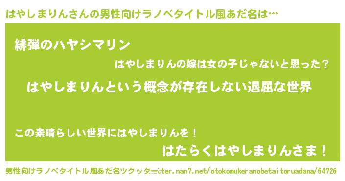 | ヘコむあだ名 | 『はやしまりん(苦笑)』『はやお』 |
