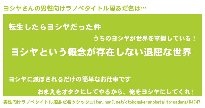 | 女子向けラノベタイトル風あだ名 | 『ヨシヤの契約王妃』 |