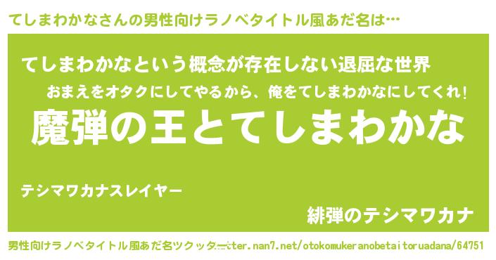 | 女子向けラノベタイトル風あだ名 | 『乙女ゲームの破滅フラグしかない悪役てしまわかなに転生してしまった…』 |