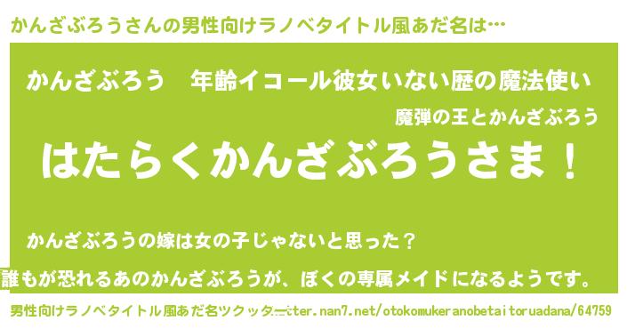 | 胡散臭い通販商品みたいなあだ名 | 『絶対に幸福をもたらす健康食品…その名も「かんざぶろう」』 |