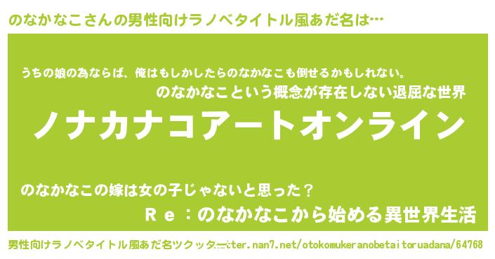 のなかなこさんの男性向けラノベタイトル風あだ名をツクッター!