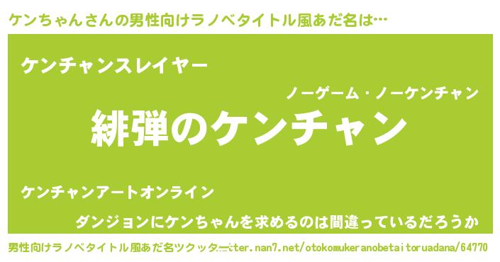 | ヘコむあだ名 | 『ケンぷりん』『ケンにゅー』 |