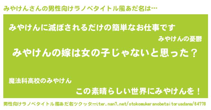 | ヒーロー風カッコイイあだ名 | 『幻影騎士ミヤ』『仮面ミヤダー』 |