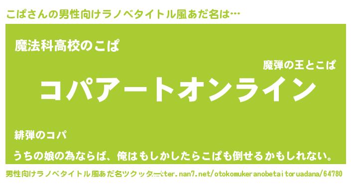 | ヒーロー風カッコイイあだ名 | 『スーパーコパ』『超時空戦士コパ』 |