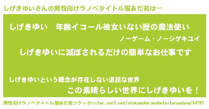 | ヘコむあだ名 | 『しげきゆい(笑)』『しげふぇ~』 |