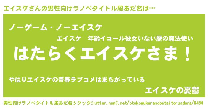 | 女子向けラノベタイトル風あだ名 | 『首の姫と首なしエイスケ』 |