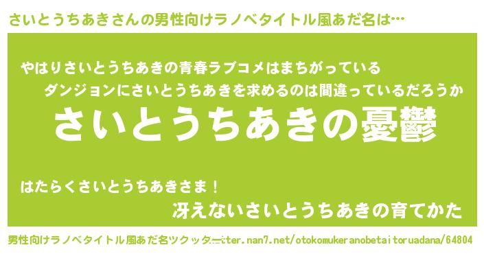 | 女子向けラノベタイトル風あだ名 | 『さいとうちあき姫と円卓の騎士』 |