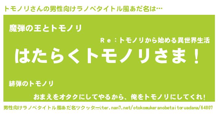 | 胡散臭い通販商品みたいなあだ名 | 『世界中を虜にした世界で10本だけ現存している希少なブランデー…その名も「トモノリ」』 |