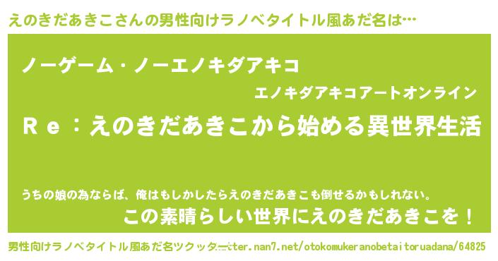 | 女子向けラノベタイトル風あだ名 | 『えのきだあきこストレイドッグス』 |
