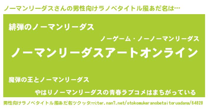 | 女子向けラノベタイトル風あだ名 | 『ノーマンリーダス姫と円卓の騎士』 |