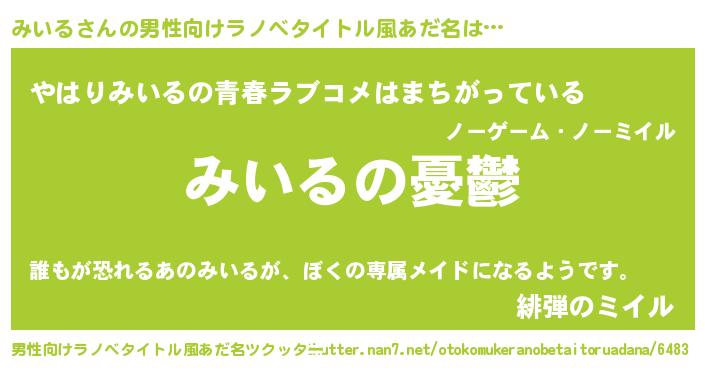 | 女子向けラノベタイトル風あだ名 | 『みいる姫と円卓の騎士』 |