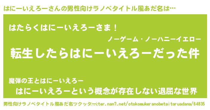 | 伝説のあだ名 | 『古より伝わる吟遊詩人はにーいえろー』 |