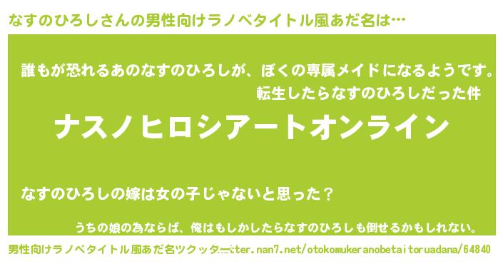 | ヒーロー風カッコイイあだ名 | 『スーパーナスノヒロシ』『魔戒騎士ナス』 |