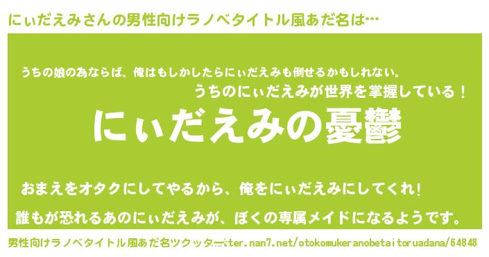にぃだえみさんの男性向けラノベタイトル風あだ名をツクッター!