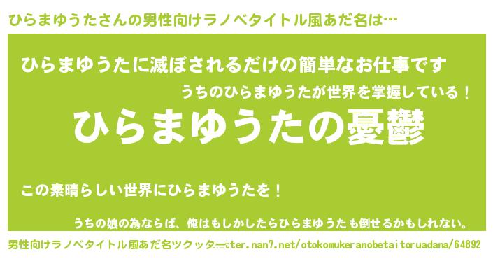 | 女子向けラノベタイトル風あだ名 | 『ひらまゆうた姫と円卓の騎士』 |