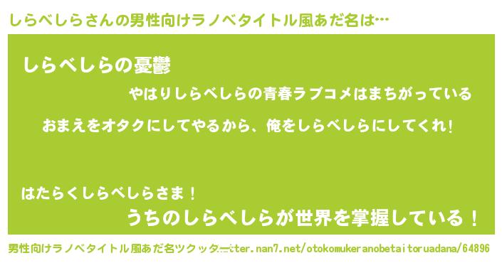 しらべしらさんの男性向けラノベタイトル風あだ名をツクッター!