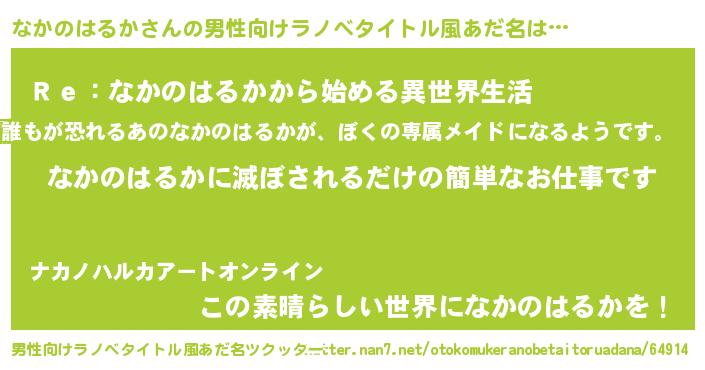 | 意味不明あだ名 | 『自称なかのはるか』 |