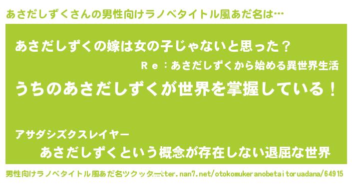 | 女子向けラノベタイトル風あだ名 | 『男装あさだしずくの憂鬱な任務』 |