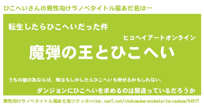| 女子向けラノベタイトル風あだ名 | 『乙女ゲームの破滅フラグしかない悪役ひこへいに転生してしまった…』 |
