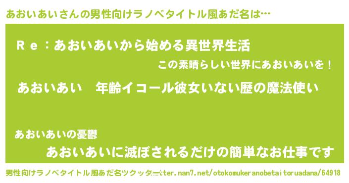 | ヒーロー風カッコイイあだ名 | 『最強戦士アオイアイ』『仮面アオダー』 |