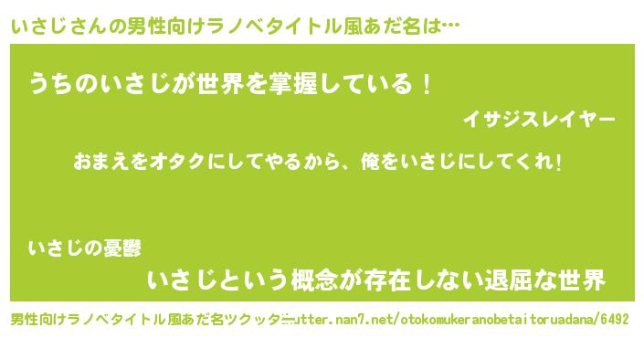 | 女子向けラノベタイトル風あだ名 | 『いさじ夫妻のなれそめ』 |