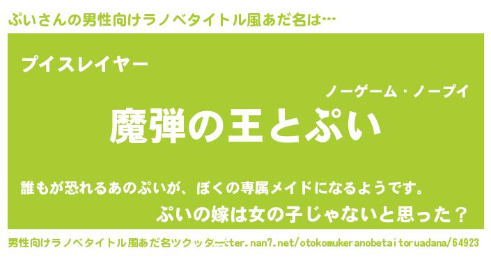 | ヒーロー風カッコイイあだ名 | 『仮面プイダー』『黄金騎士プイ』 |