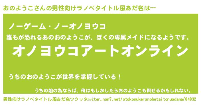 | 意味不明あだ名 | 『ペロリンおのようこ』『自称おのようこ』 |