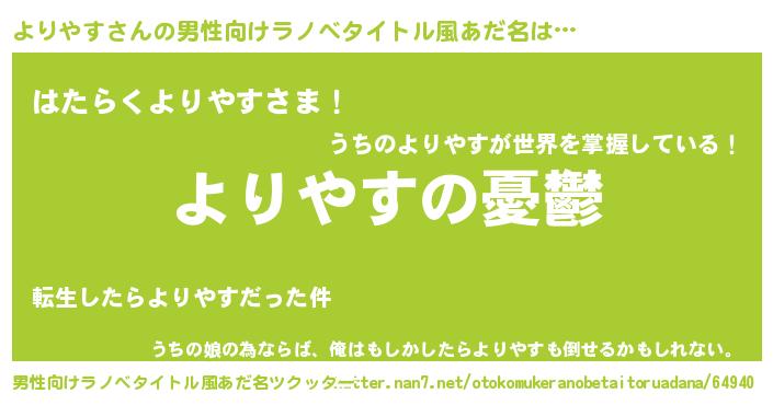 | ファンタジー風あだ名 | 『ヨリフェル』『エターナルヨリヤスー』 |