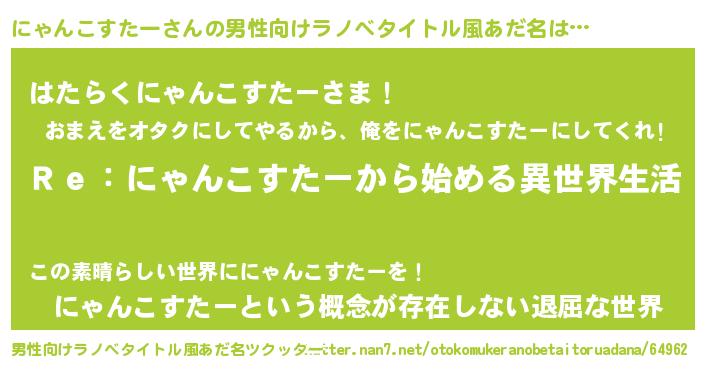 | 胡散臭い通販商品みたいなあだ名 | 『テレビで話題の高麗人参…その名も「にゃんこすたー」』 |