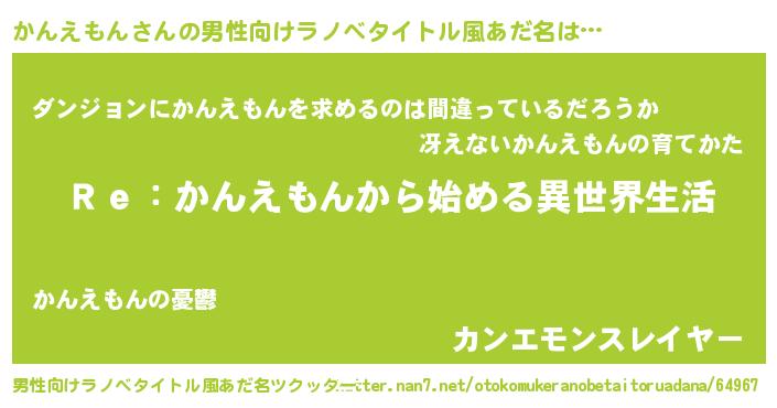 | 女子向けラノベタイトル風あだ名 | 『かんえもんストレイドッグス』 |