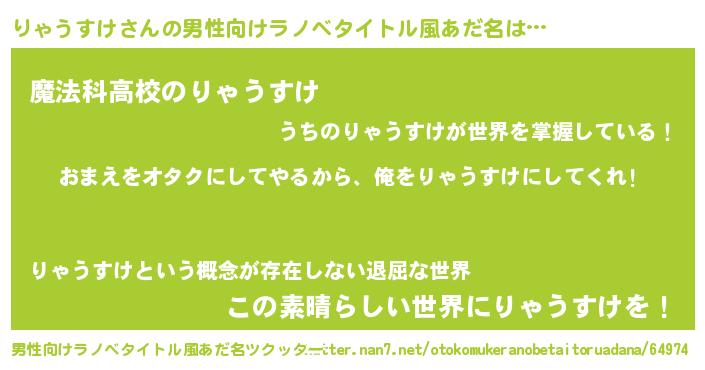 | ヘコむあだ名 | 『りゃうすけ(笑)』『りゃっふぃ~』 |