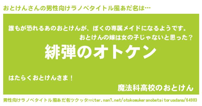 | 胡散臭い通販商品みたいなあだ名 | 『絶対に幸福をもたらす健康食品…その名も「おとけん」』 |