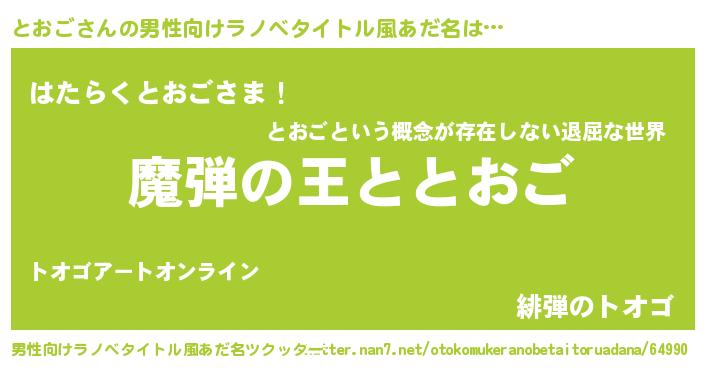 | ヒーロー風カッコイイあだ名 | 『仮面トオダー』『ネオトオゴ』 |