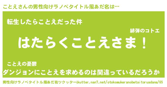 | 胡散臭い通販商品みたいなあだ名 | 『信頼と実績のサプリメント…その名も「ことえ」』 |
