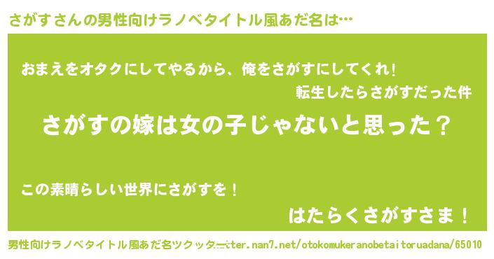 | ヒーロー風カッコイイあだ名 | 『炎刃騎士サガ』『慈愛の使者さがす』 |
