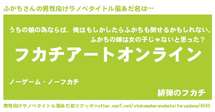 | 女子向けラノベタイトル風あだ名 | 『ふかち姫と円卓の騎士』 |