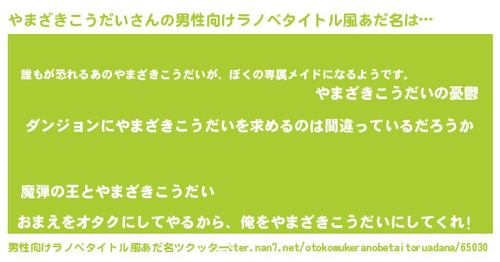 | 胡散臭い通販商品みたいなあだ名 | 『伝統あるサプリメント…その名も「やまざきこうだい」』 |