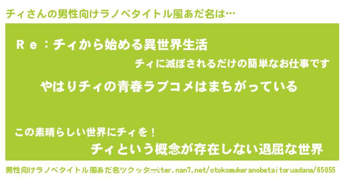 チィさんの男性向けラノベタイトル風あだ名をツクッター!