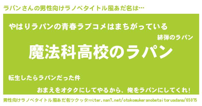 | 女子向けラノベタイトル風あだ名 | 『ラパンなんてお断りですっ。』 |