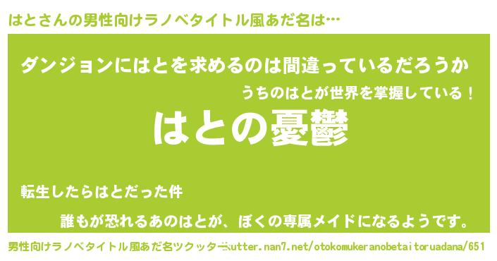 | 胡散臭い通販商品みたいなあだ名 | 『必ず成功する水晶球…その名も「はと」』 |