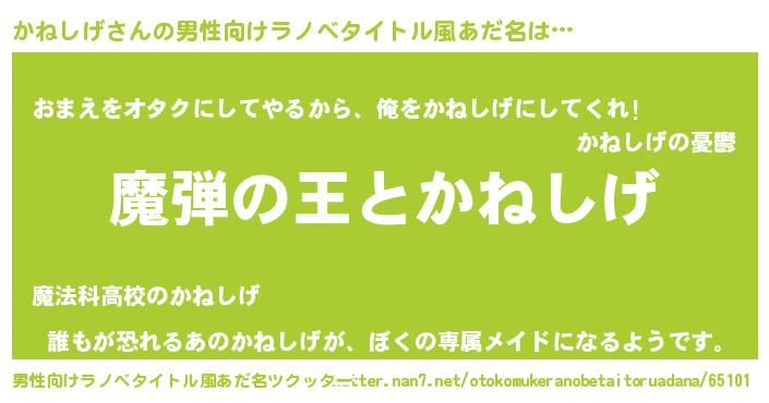 | 女子向けラノベタイトル風あだ名 | 『乙女ゲームの破滅フラグしかない悪役かねしげに転生してしまった…』 |