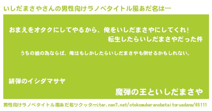 | 女子向けラノベタイトル風あだ名 | 『いしだまさやの婚約者』 |
