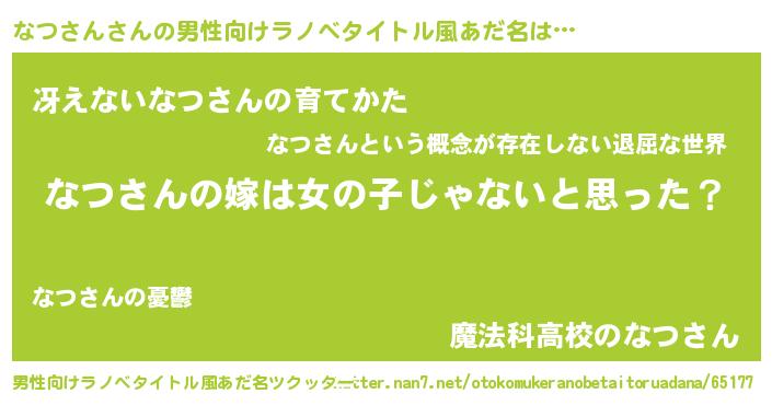 | 女子向けラノベタイトル風あだ名 | 『なつさんの卵を拾いまして』 |