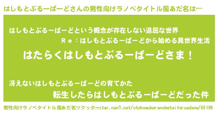 | 欧米人風あだ名 | 『アンジェラ・はしもとぶるーばーど』 |